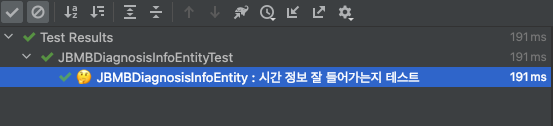 ์์ฑํ ํ ์คํธ ์ฝ๋์ ๋๋ค. JBMBDiagnosisInfoEntity๋ JBMBCommonTimeEntity๋ฅผ ์์๋ฐ์์ต๋๋ค.