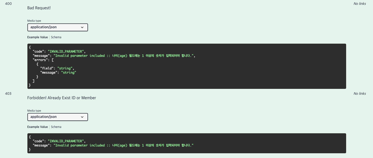 @ApiResponse(responseCode = "403", description = "Forbidden! Already Exist ID or Member"),