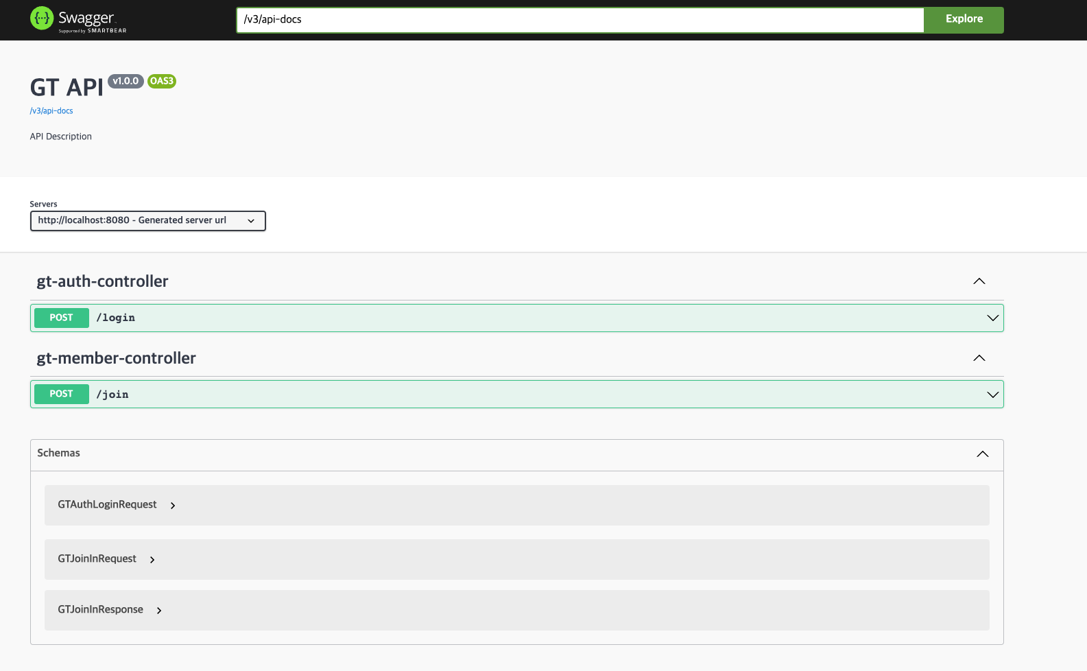 아래는, name = "GT Member", description = "GT의 회원 관련~"으로 설정한 후 Swagger UI를 확인한 모습입니다.