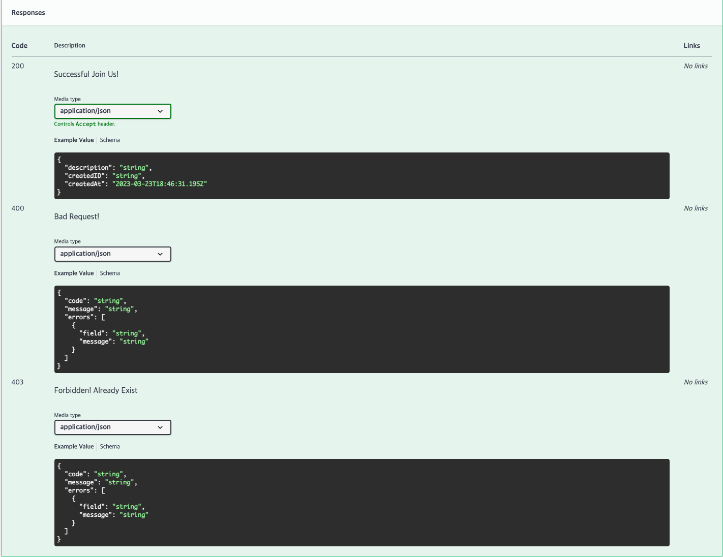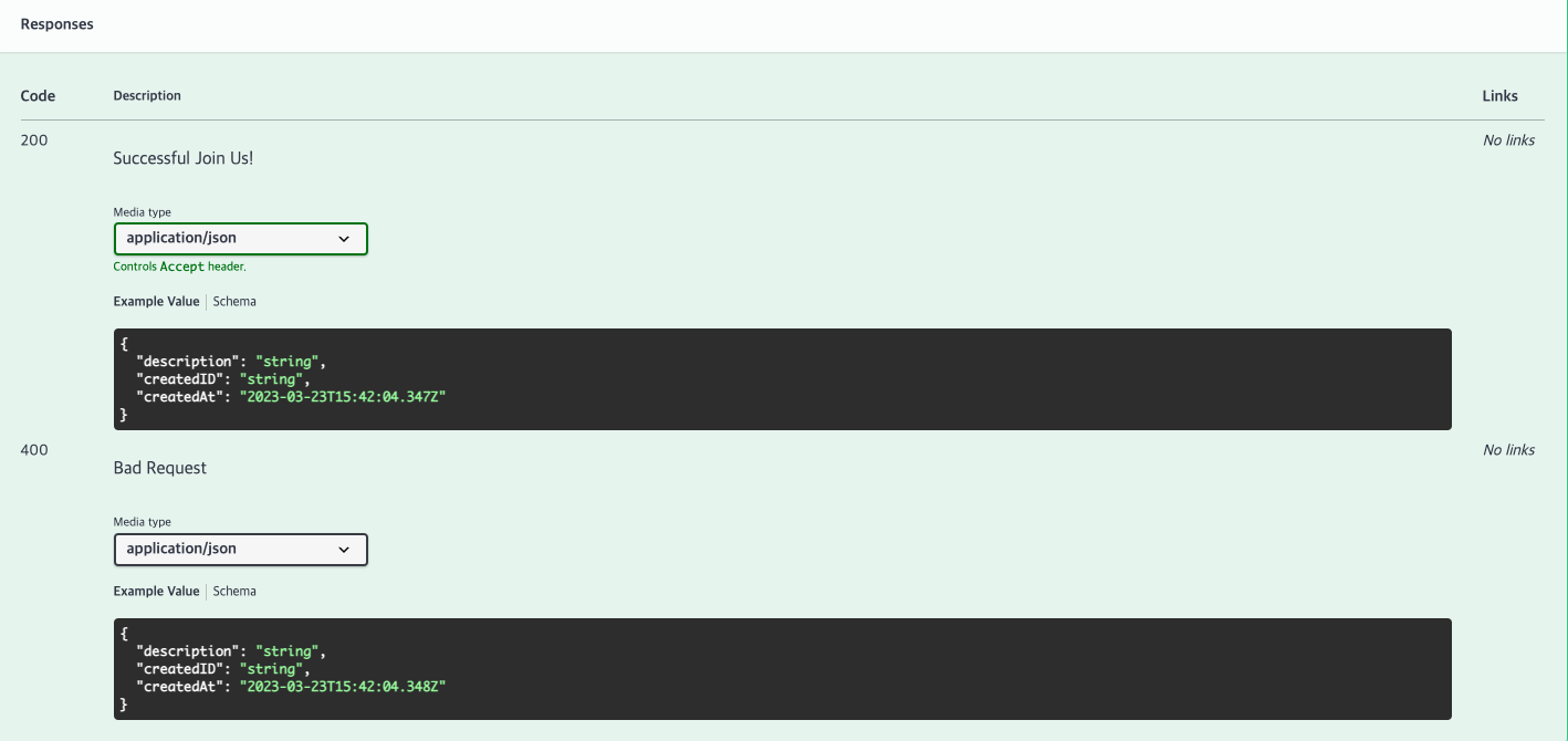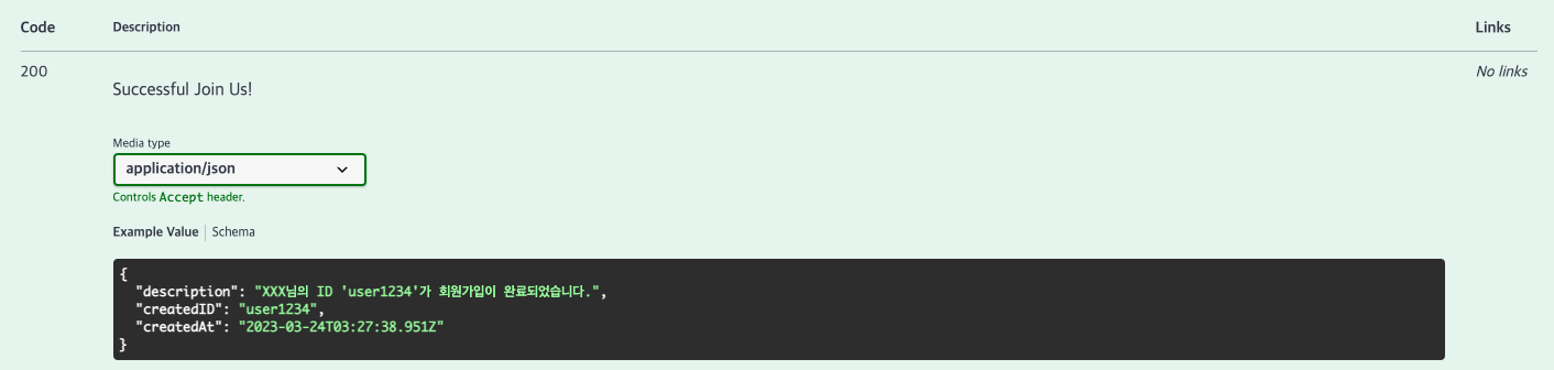 @ApiResponse(responseCode = "200", description = "Successful Join Us!"),