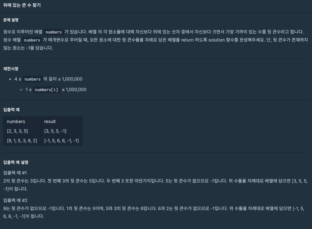 ์ฐ์ result์ ๊ฐ์ ๋ชจ๋ -1๋ก ์ด๊ธฐํ ์ํจ ํ, numbers์ ์ซ์๋ค์ ๋ํด Stack์์ ๊ด๋ฆฌํฉ๋๋ค.