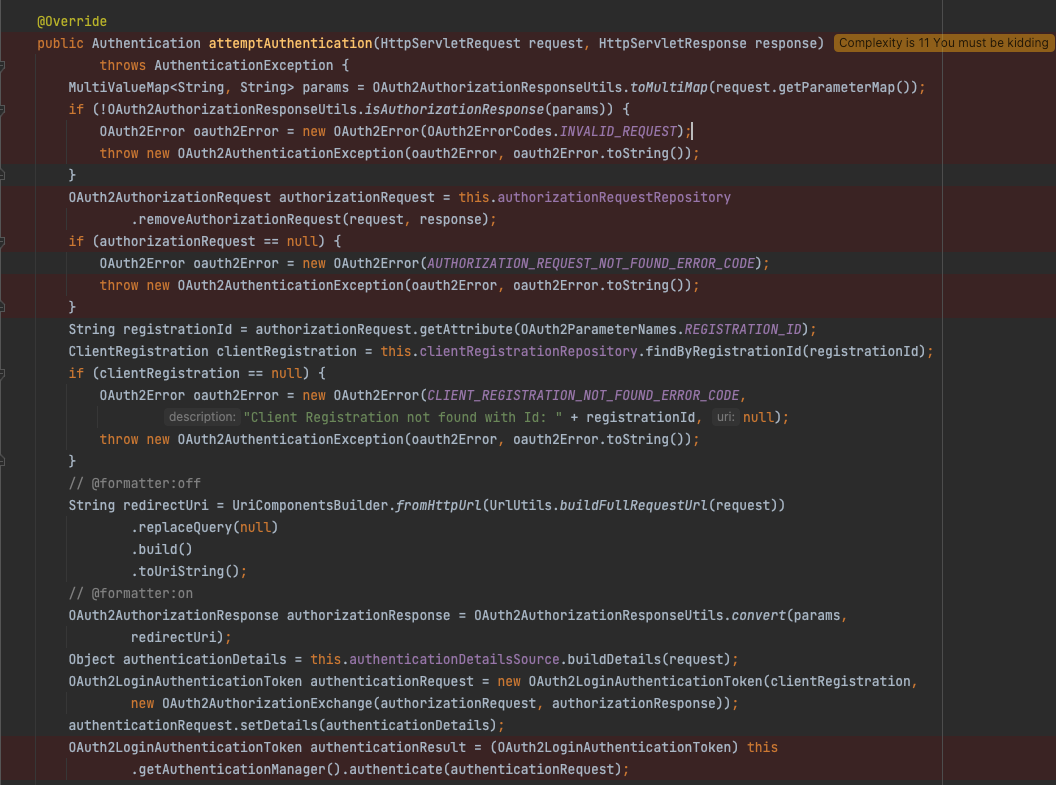 ๊ทธ๋๋ ์ด๋ฌํ ์ค์ ๋๋ถ์ oauth2 client๊ฐ ์ด๋ป๊ฒ authroization code grant ๋ฐฉ์์ ์ฒ๋ฆฌํ๋์ง, ๋ด๋ถ๋ฅผ ๋ค์ฌ๋ค ๋ณผ ์ ์๋ ์ข์ ๊ธฐํ๊ฐ ๋ ๊ฒ ๊ฐ์ต๋๋ค.
