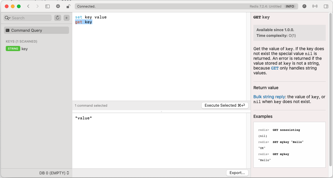 ์๋๋, ๋ฐ์ดํฐ๊ฐ ์ ์ฝ์ ๋๋์ง ํ ์คํธ์ฉ์ผ๋ก, ๊ฐ๋จํ๊ฒ Medis GUI๋ฅผ ํตํด Connection์ ๋งบ์ต๋๋ค. ํ๋จ์ Cluster ๋ชจ๋๋ฅผ ์ค์ ํด์ MOVED ์๋ฌ๋ฅผ ํ์ฒ๋ฆฌ ํ ํ ๊ฒฐ๊ณผ ๊ฐ์ ๋ณด์ฌ์ฃผ๋๋ก ์ธํ ํฉ๋๋ค.
