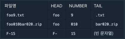ํ์ผ๋ช ์ ํฌ๊ฒ HEAD, NUMBER, TAIL์ ์ธ ๋ถ๋ถ์ผ๋ก ๊ตฌ์ฑ๋๋ค.