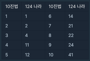 μμ°μ nμ΄ λ§€κ°λ³μλ‘ μ£Όμ΄μ§ λ, nμ 124 λλΌμμ μ¬μ©νλ μ«μλ‘ λ°κΎΌ κ°μ return νλλ‘ solution ν¨μλ₯Ό μμ±ν΄ μ£ΌμΈμ.