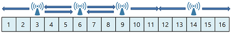 ์๋ฅผ ๋ค์ด 11๊ฐ์ ์ํํธ๊ฐ ์ญ ๋์ด์ ์๊ณ , [4, 11] ๋ฒ์งธ ์ํํธ ์ฅ์์๋ 4g ๊ธฐ์ง๊ตญ์ด ์ค์น๋์ด ์์ต๋๋ค. ๋ง์ฝ ์ด 4g ๊ธฐ์ง๊ตญ์ด ์ ํ ๋๋ฌ ๊ฑฐ๋ฆฌ๊ฐ 1์ธ 5g ๊ธฐ์ง๊ตญ์ผ๋ก ๋ฐ๋ ๊ฒฝ์ฐ ๋ชจ๋ ์ํํธ์ ์ ํ๋ฅผ ์ ๋ฌํ ์ ์์ต๋๋ค. (์ ํ์ ๋๋ฌ ๊ฑฐ๋ฆฌ๊ฐ W์ผ ๋, ๊ธฐ์ง๊ตญ์ด ์ค์น๋ ์ํํธ๋ฅผ ๊ธฐ์ค์ผ๋ก ์ ํ๋ฅผ ์์ชฝ์ผ๋ก W๋งํผ ์ ๋ฌํ ์ ์์ต๋๋ค.)