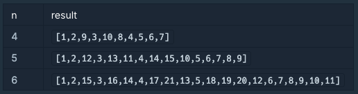 ์ ์ n์ด ๋งค๊ฐ๋ณ์๋ก ์ฃผ์ด์ง๋๋ค. ๋ค์ ๊ทธ๋ฆผ๊ณผ ๊ฐ์ด ๋ฐ๋ณ์ ๊ธธ์ด์ ๋์ด๊ฐ n์ธ ์ผ๊ฐํ์์ ๋งจ ์ ๊ผญ์ง์ ๋ถํฐ ๋ฐ์๊ณ ๋ฐฉํฅ์ผ๋ก ๋ฌํฝ์ด ์ฑ์ฐ๊ธฐ๋ฅผ ์งํํ ํ, ์ฒซ ํ๋ถํฐ ๋ง์ง๋ง ํ๊น์ง ๋ชจ๋ ์์๋๋ก ํฉ์น ์๋ก์ด ๋ฐฐ์ด์ return ํ๋๋ก solution ํจ์๋ฅผ ์์ฑํด์ฃผ์ธ์.