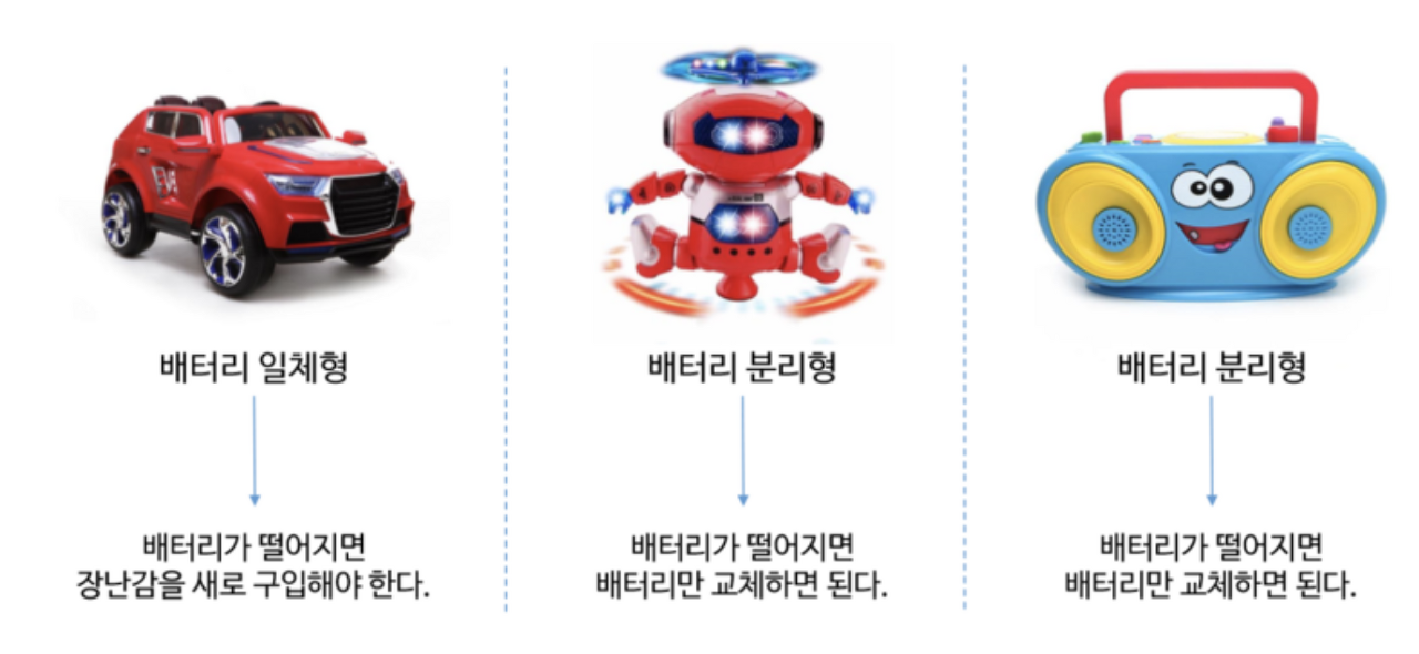 ๋ฐ๋ฉด์, ๋ฐฐํฐ๋ฆฌ ๋ถ๋ฆฌํ ์ฅ๋๊ฐ์, ๋ฐฐํฐ๋ฆฌ๋ฅผ ์ฌ์ฉํ์ง๋ง ๋ค ๋จ์ด์ง๋ฉด ์ฅ๋๊ฐ์ ๋ฐ๊พธ๋ ๊ฒ์ด ์๋๋ผ ๋ฐฐํฐ๋ฆฌ๋ง ๊ฐ์ ๋ผ์์ฃผ๋ฉด ๋๋ค.