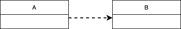 ์์ UML์ ๋ณด๋ฉด, ์์กด๊ด๊ณ๋ฅผ ์์ ๊ฐ์ด ์ ์ ์ผ๋ก ํํํ๊ณ , A๊ฐ B์ ์์กดํ๊ณ ์์์ ๋ํ๋ธ๋ค.
